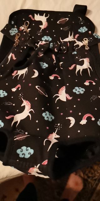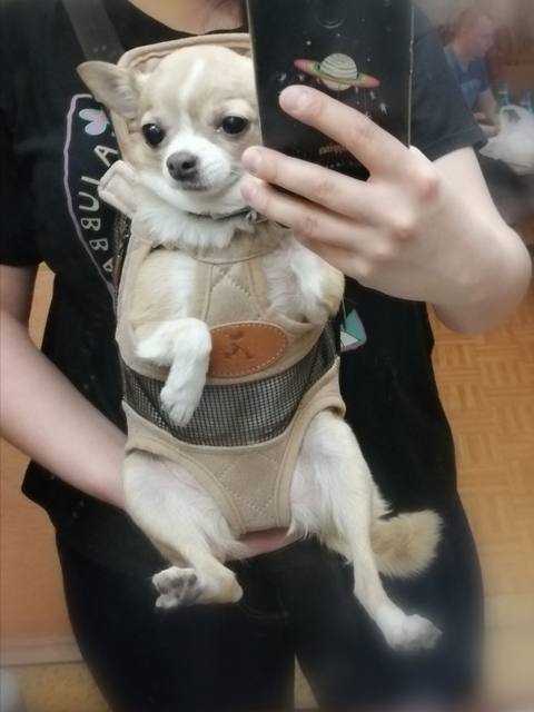 Just super! Pleasant, strong, fit in size. Ordered for a Chihuahua-disabled without a foot 3 kg, for a more convenient movement at long distances, because the hand is sinking. It is possible to carry a dog on the shoulder too, so the dog is even more convenient